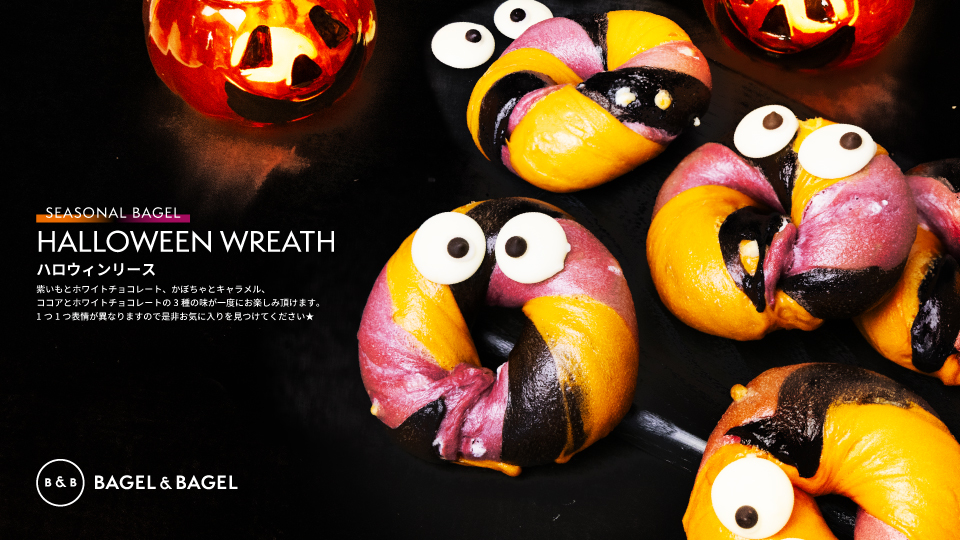 かぼちゃや安納芋を使用したベーグルやマフィンに加え、表情豊かなハロウィン限定ベーグルを期間限定で販売いたします。