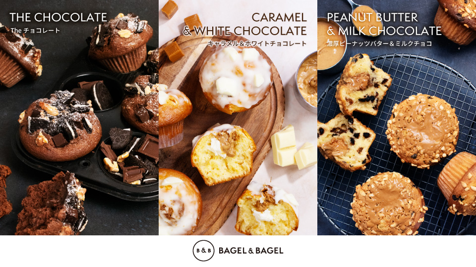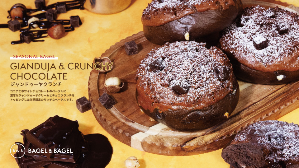 香ばしい全粒粉を配合したベーグルや、カカオ70%のチョコチップを練り込んだベーグル、ジャンドゥーヤベーグルなどを期間限定で販売いたします。
